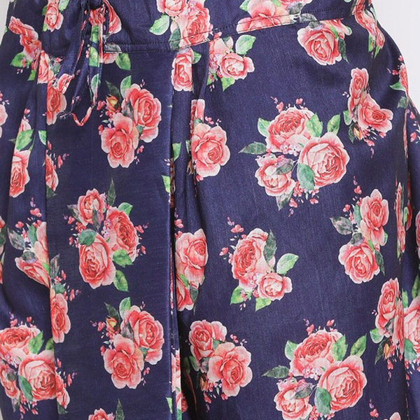 • Navy blue dhoti pants with intricate embroidery detailing, has an elasticated waistband with slip-on closure